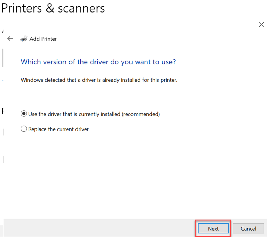 - Specify printer name and click Next.
