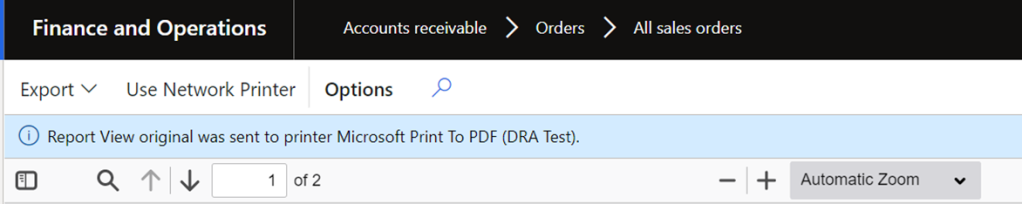 DRA as a desktop application uses Adobe Reader to spool the document to the shared printer device chosen in finance and operations. Microsoft recommends installing the Document Routing Agent in several places to manage situations when documents with custom margins need to be printed. The printers for those documents should thus only be installed on Document Routing Agents that will operate in desktop application mode. As an alternative, you can pick up the files in the target directory and guide them in the right direction using a post-execution process.